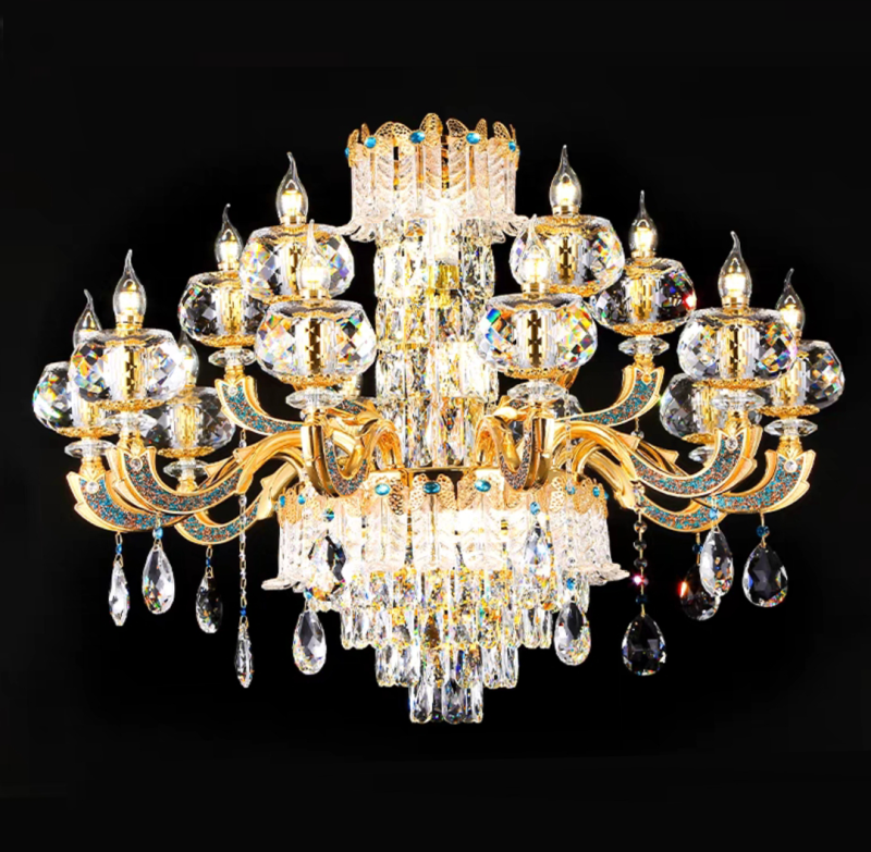 型号:23HJD8201C 15头/直径95cm/高65cm/E14*10+E27*4/ 长期现货3-5天出货 材质:合金+水晶 价格 2086元