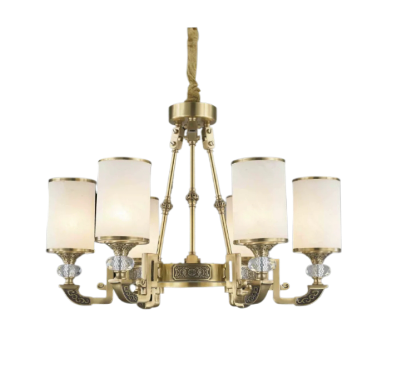 型号:25ZS1001 6头/直径70cm/高48cm/E27*6/ 长期现货3-5天出货 材质:铜+玻璃罩 价格 2880元