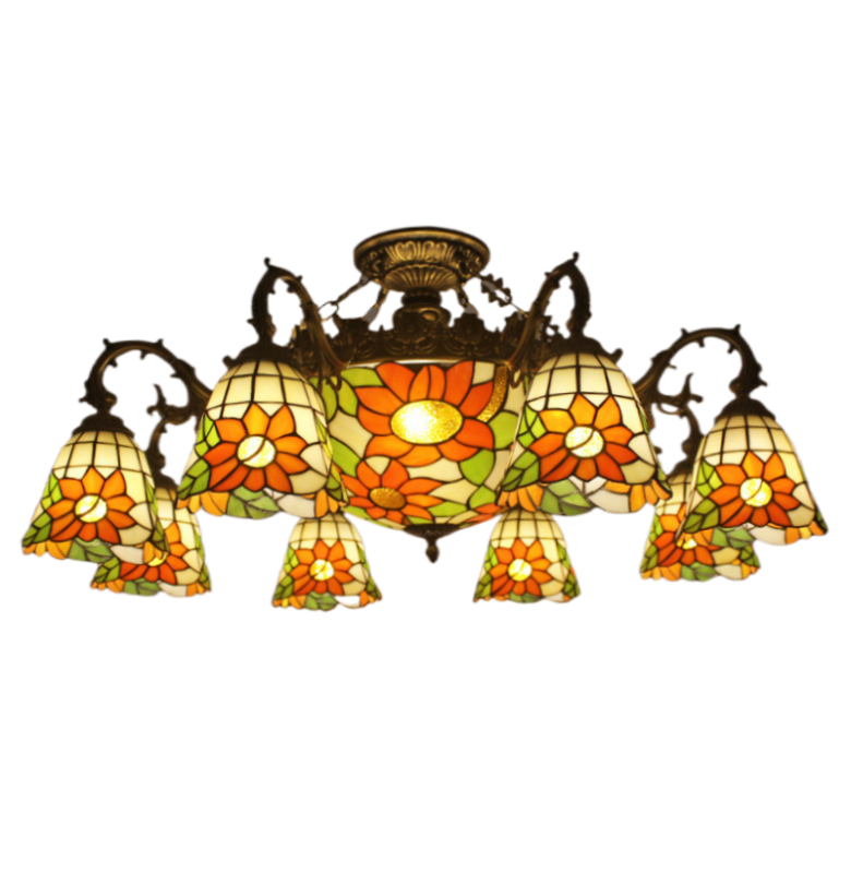 型号:DFXL102 8头/直径92cm/高30cm/E27*11/ 长期现货3-5天出货 材质:铁艺+蒂凡尼 质保:10年